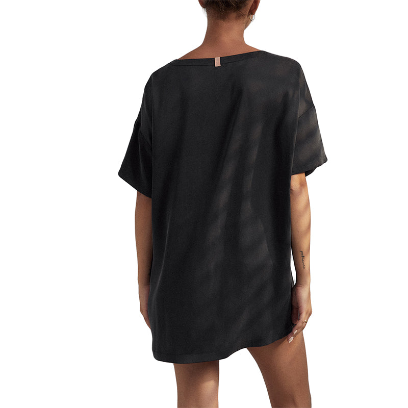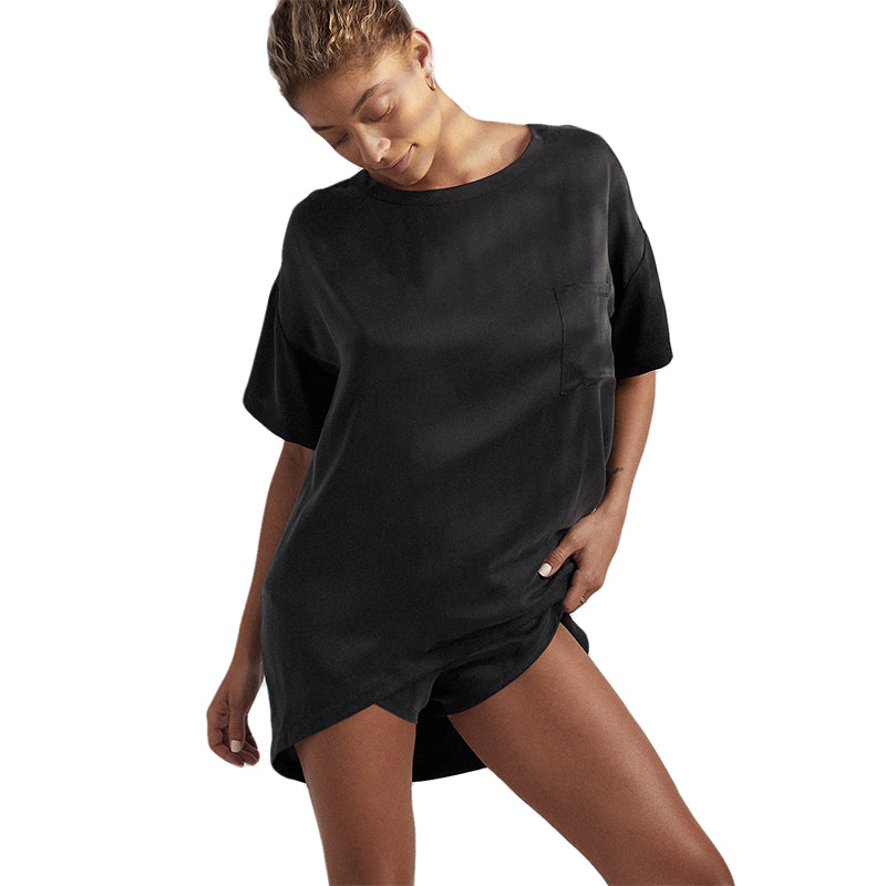If you're constantly wrapping yourself up in your silk sheets, wait 'till you slip on this baby. Designed in an oversized relaxed fit, the Washable Silk Tee Set features clean geometric lines and a luxe look that'll have you feeling polished — even if you're on day 3 of that topknot.