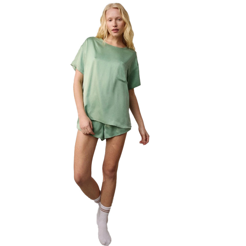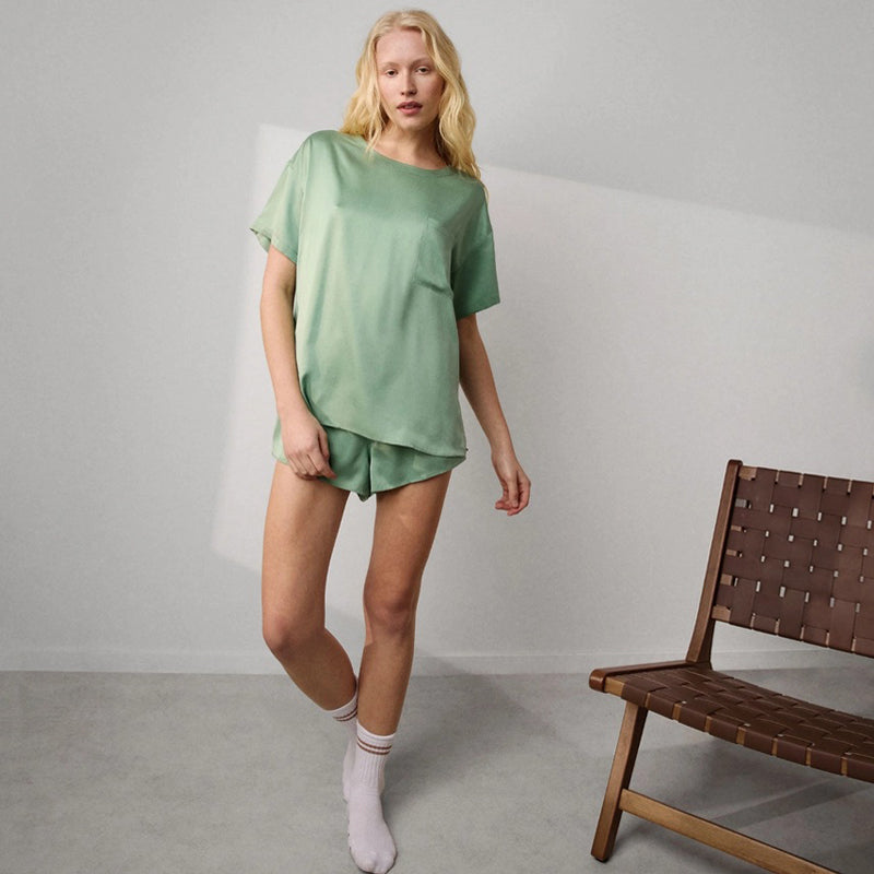 If you're constantly wrapping yourself up in your silk sheets, wait 'till you slip on this baby. Designed in an oversized relaxed fit, the Washable Silk Tee Set features clean geometric lines and a luxe look that'll have you feeling polished — even if you're on day 3 of that topknot.