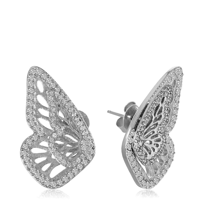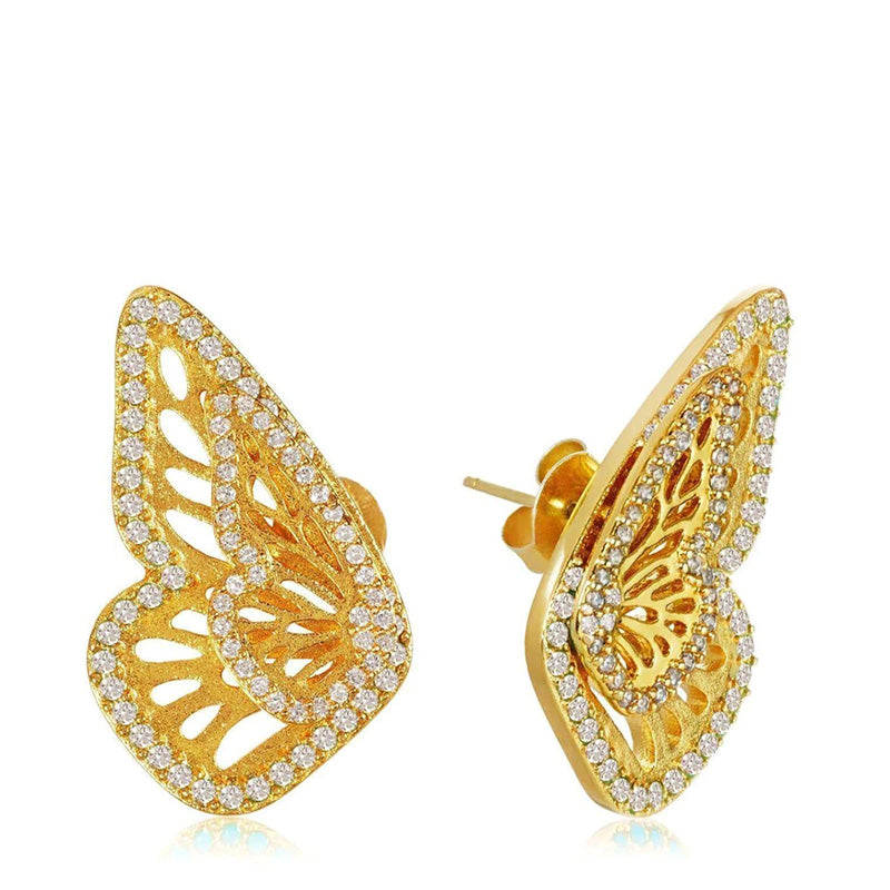 Chrysalis half butterfly stud earring features pave stone accents with 3D effect.
