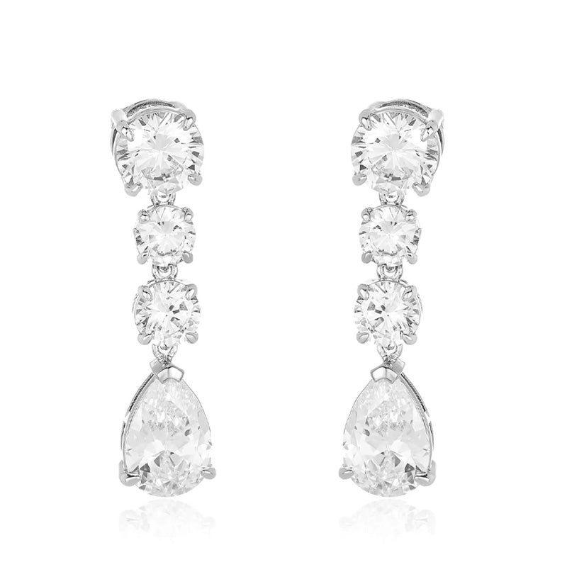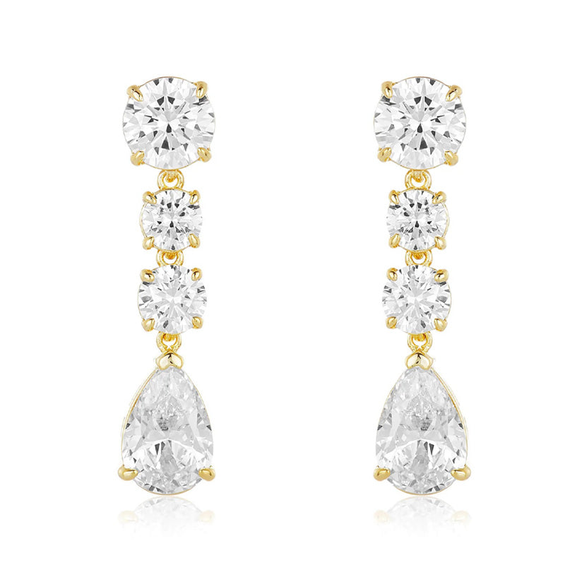 These earrings feature teardrop and round brilliant cut simulated diamonds. They are lightweight and easy to wear everyday!