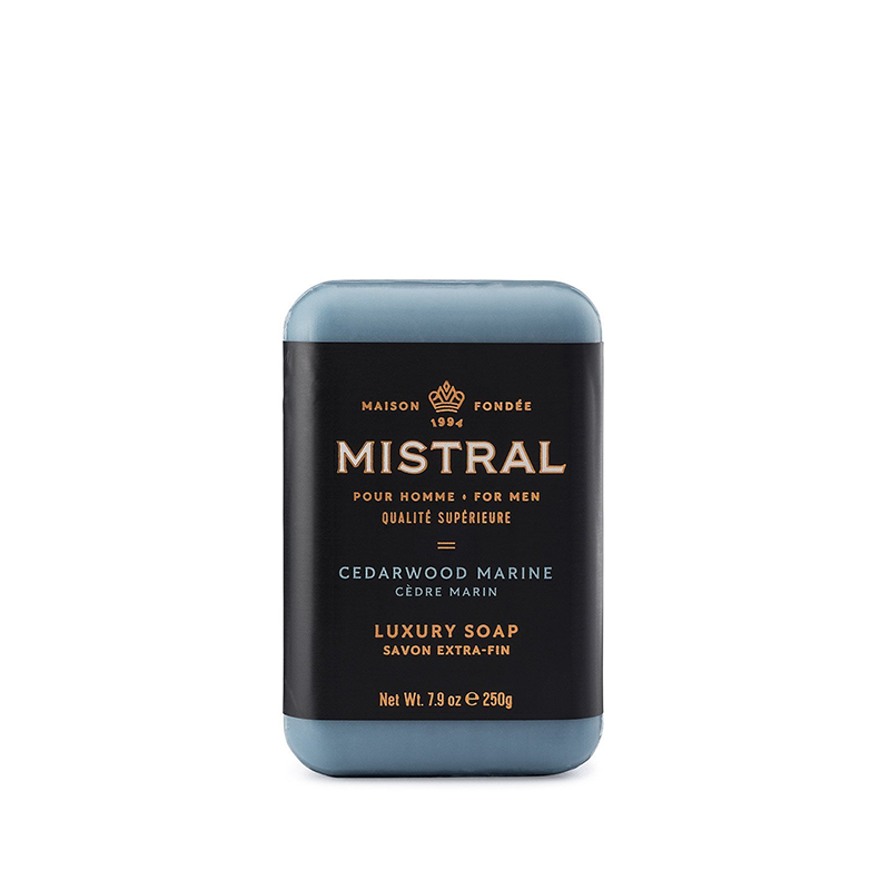 Rich in hydrating grapeseed oil and glycerin, Mistral's authentic triple-milled soap moisturizes the skin and leaves a bold fragrance behind.
