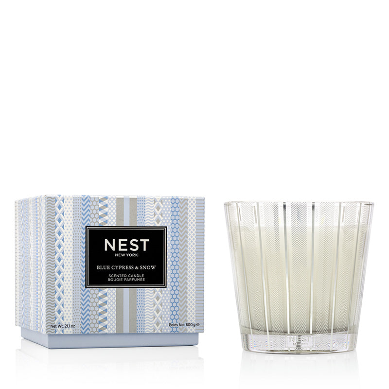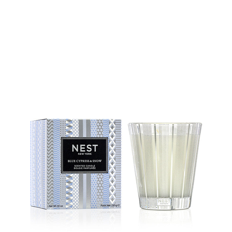 The aroma of a snow-covered mountain retreat in winter is created by combining crisp blue cypress, juniper berry, and hints of smoked vanilla bean.