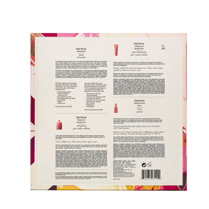 Immediately illuminate blonde hair. The revitalizing Bright Blonde Shampoo for Beautiful Color visibly brightens and corrects brassiness and yellow tones while gently cleansing. Bright Blonde Conditioner for Beautiful Color nourishes and restores elasticity, imparting strength and sheen. Bright Blonde Essential Priming Serum illuminates from within and replenishes moisture while shielding from heat styling up to 450F.