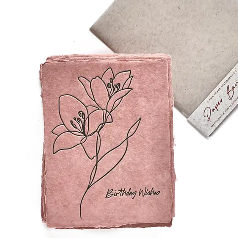 Paper Barista's handmade cards feature a creamy, soft texture and a natural deckled edge around all four sides. Not only is handmade paper beautiful, but it helps us ensure there was no slave labor in the supply chain.