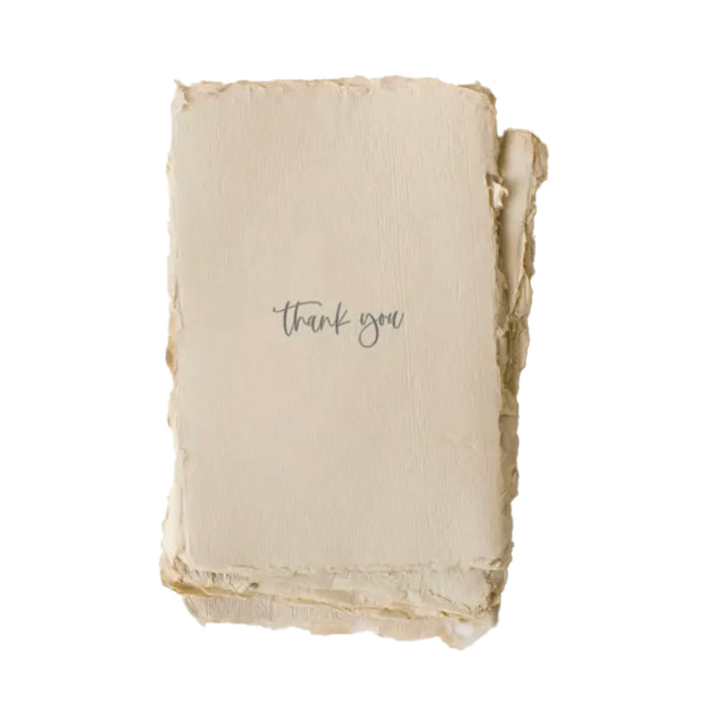 Paper Barista's handmade cards feature a creamy, soft texture and a natural deckled edge around all four sides. Not only is handmade paper beautiful, but it helps us ensure there was no slave labor in the supply chain.