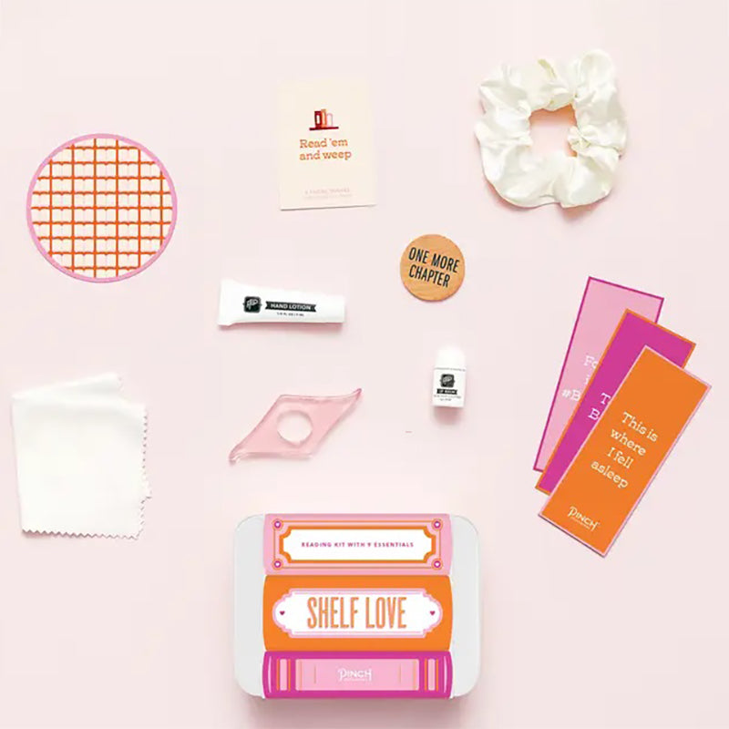 So show yourself some “shelf love” with a good book and the new Pinch Reading Kit. From V-Day to Mother’s Day, it’s a great gift for avid readers. The Reading Kit contains 9 essentials to keep you totally booked.
