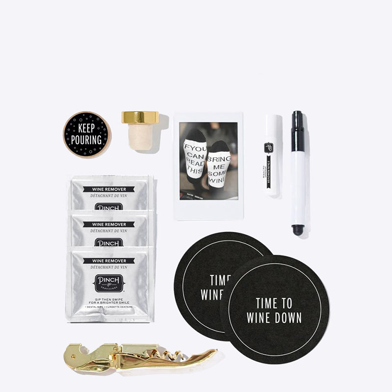 Put up your feet and pour a glass. It’s time to “wine down” with the Wine Night Kit by Pinch Provisions. Useful for a formal soiree or a party of one, this kit will help wine-lovers make any “pour” decision. Pair with a bottle of wine for the perfect gift!