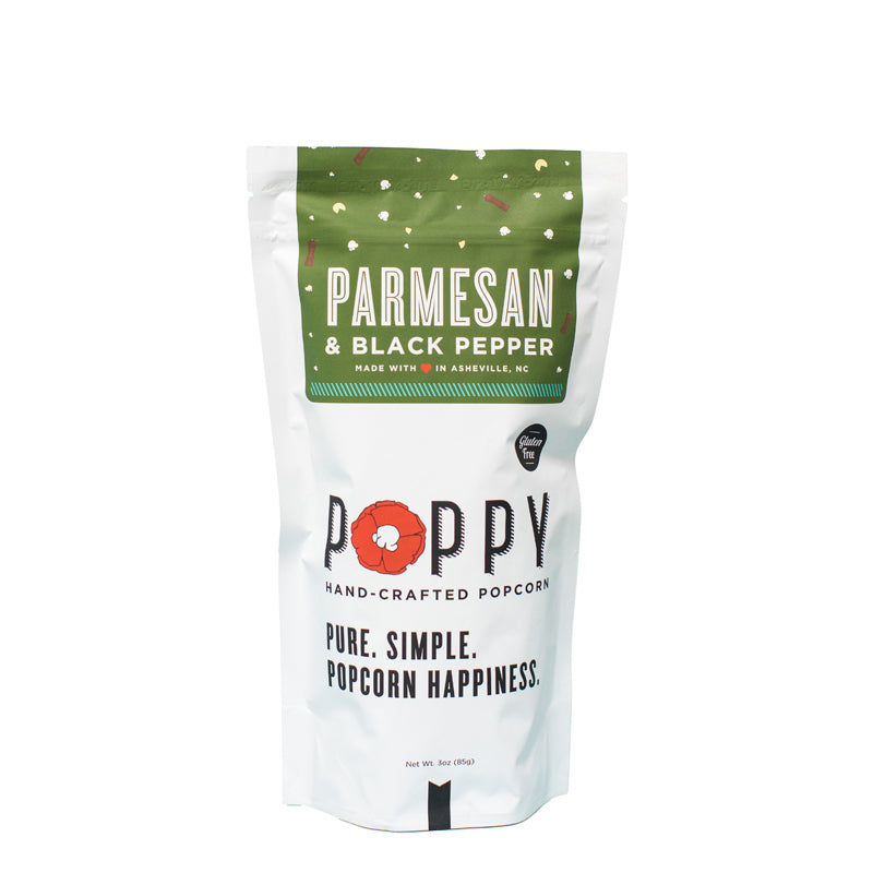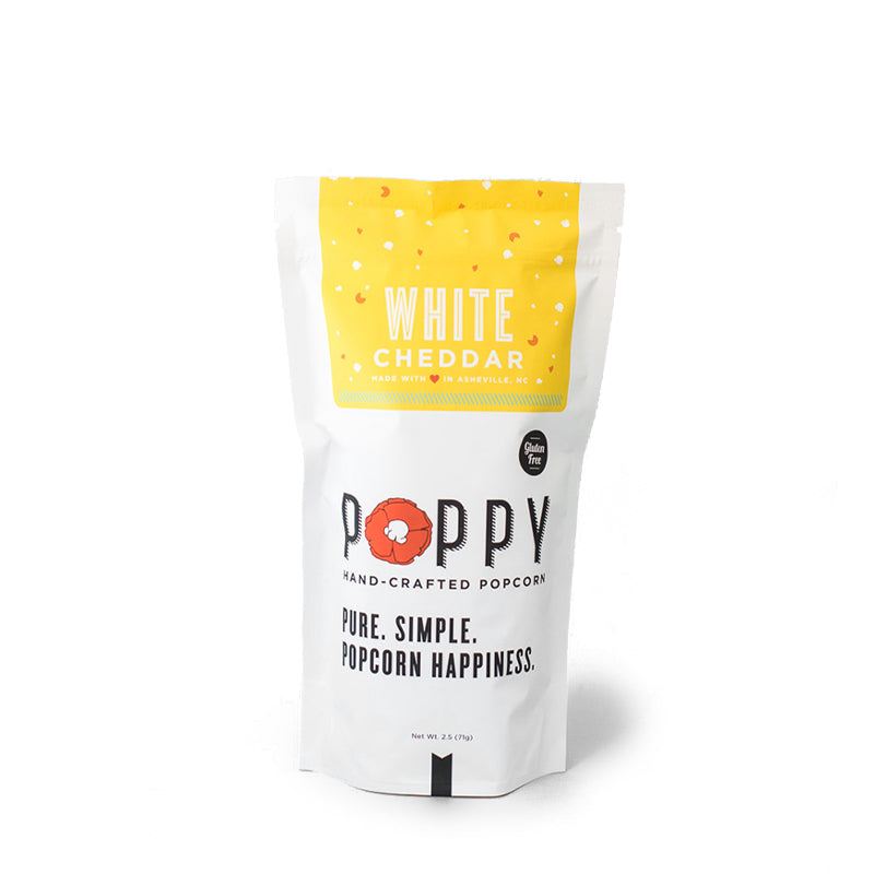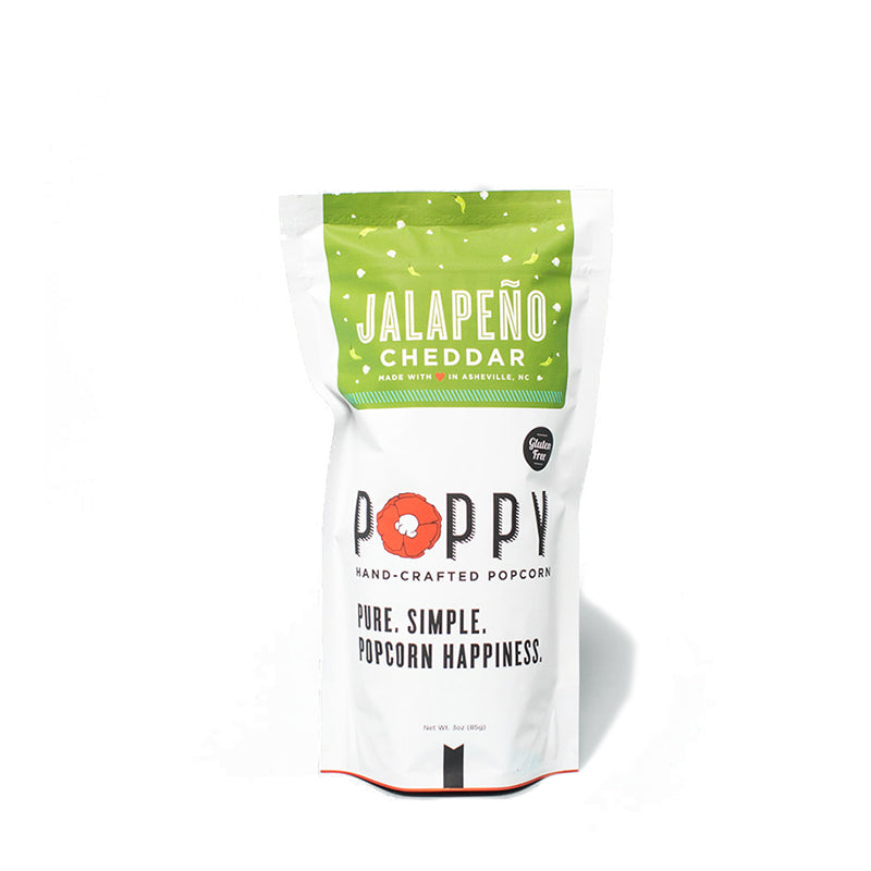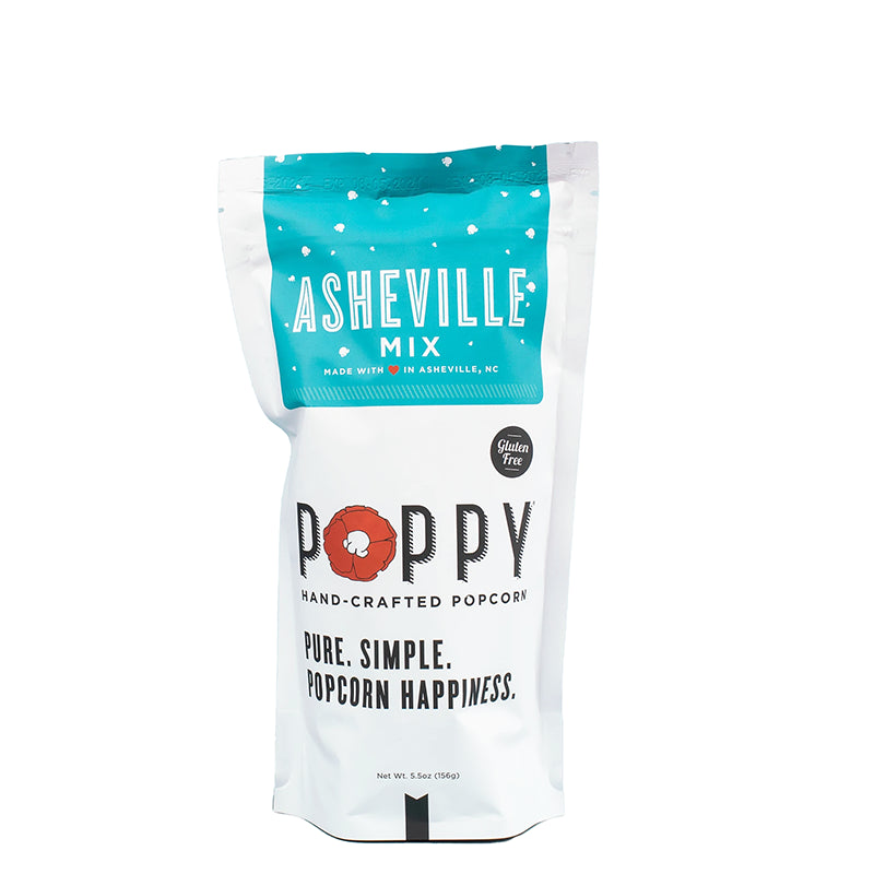 In late 2014, armed with a hard work ethic, one popcorn machine, and a clear vision of what she wanted Poppy to be, Ginger Frank opened up Poppy Hand-Crafted Popcorn, a locally-sourced, small-batch artisan popcorn shop based in Asheville, North Carolina. She wanted Poppy to be simple, fun, well-designed, and of course, tasty, without a lot of the icky ingredients found in other popcorn brands. Instead of sourcing out the production as so many wholesale snack companies do, Poppy is still hand-crafted, batch by batch, in Asheville.  That way Ginger can see and taste that the popcorn going out across the country is every bit as good as the popcorn that’s popped daily in the retail shop.