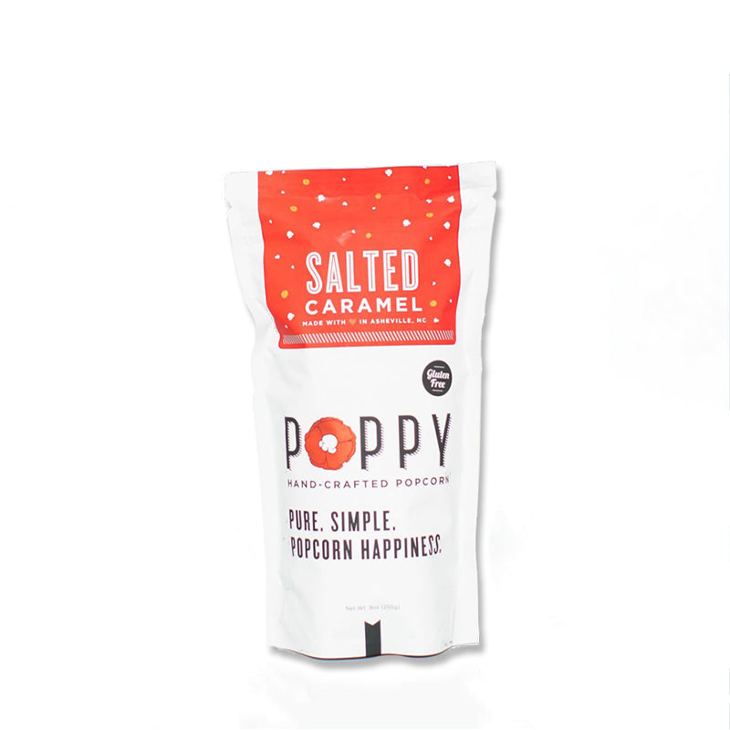 In late 2014, armed with a hard work ethic, one popcorn machine, and a clear vision of what she wanted Poppy to be, Ginger Frank opened up Poppy Hand-Crafted Popcorn, a locally-sourced, small-batch artisan popcorn shop based in Asheville, North Carolina. She wanted Poppy to be simple, fun, well-designed, and of course, tasty, without a lot of the icky ingredients found in other popcorn brands. Instead of sourcing out the production as so many wholesale snack companies do, Poppy is still hand-crafted, batch by batch, in Asheville. That way Ginger can see and taste that the popcorn going out across the country is every bit as good as the popcorn that’s popped daily in the retail shop.