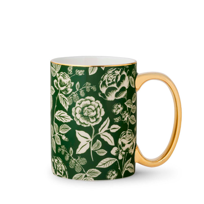 Rifle Paper Co. porcelain mugs feature illustrated designs and a gilded rim and handle to add a little something special to your favorite beverage.