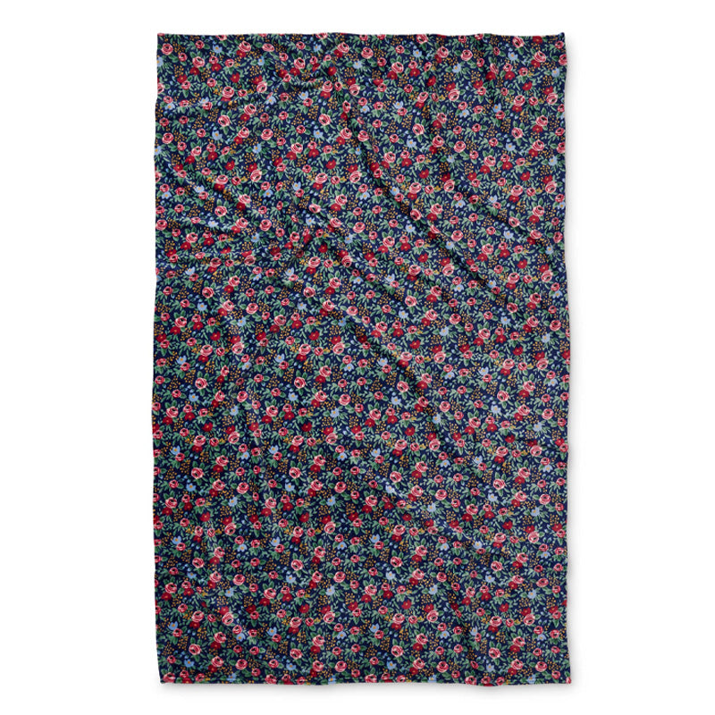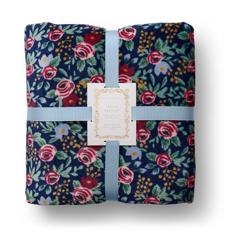 Curl up with a reversible fleece blanket featuring the Rosa floral print, a re-colored version of a design pulled from our archive. Made of plush fleece, the blanket comes packaged with a ribbon so it’s ready to gift.