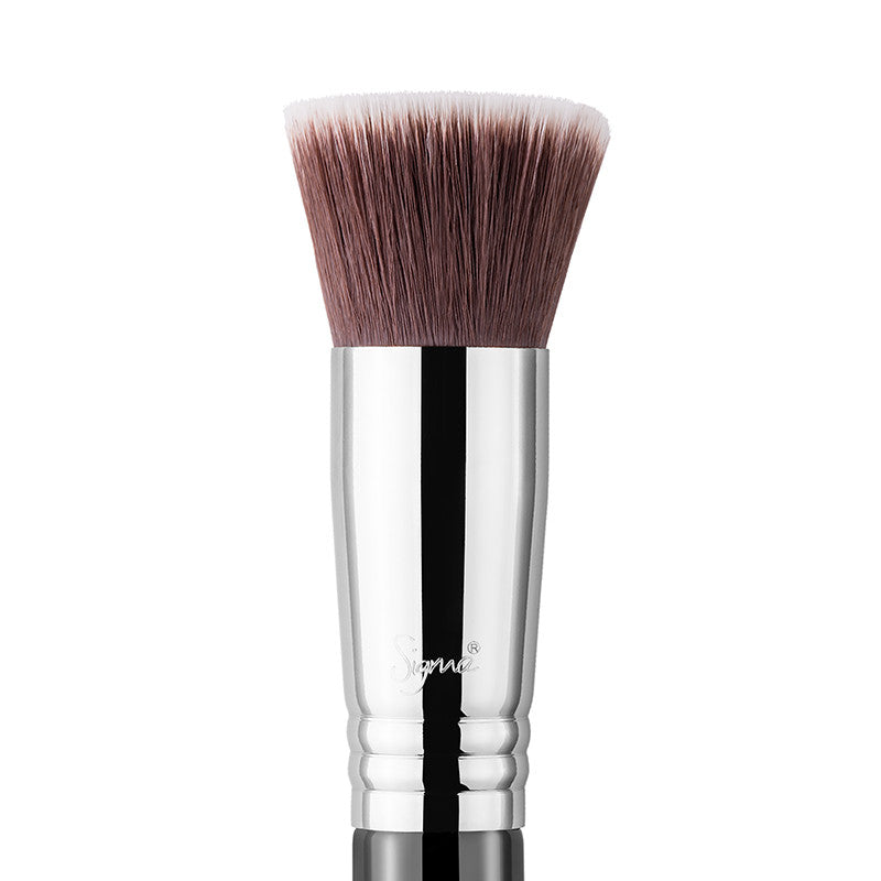 The Flat Kabuki Brush features a flat top brush head with very soft and dense fibers. This brush provides a flawless, high definition finish with liquid or cream foundation without any absorption of product.