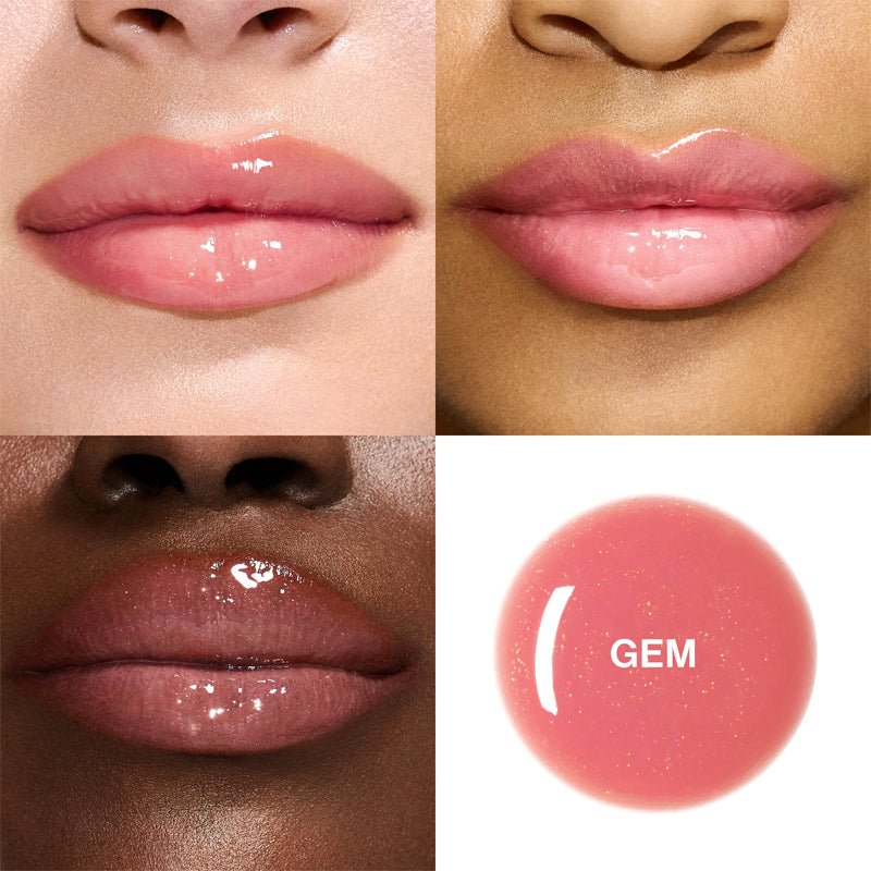 A plumping lip gloss that nourishes, glazes, and defines lips with Hyaluronic Acid Spheres and up to six hours of touchup-free shine—. The non-sticky balm gloss formula visually plumps lips with hydrating, juicy payoff and leaves a gentle tingle with each swipe of the oversized doe foot applicator.