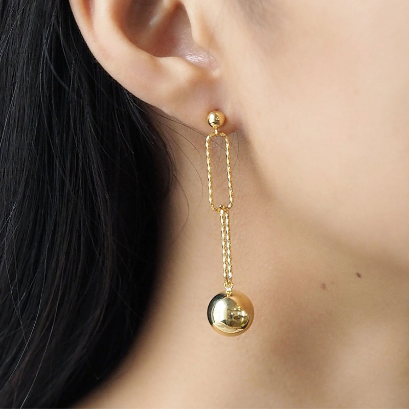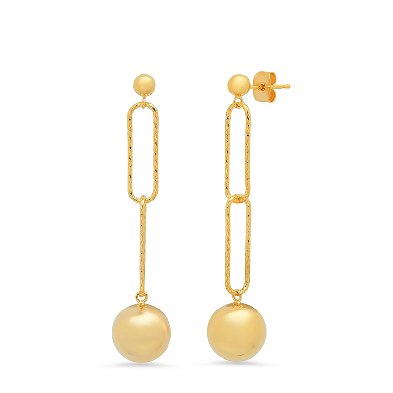 Clean and modern, this double link drop earring with ball accent is a stunning earring for day or evening.