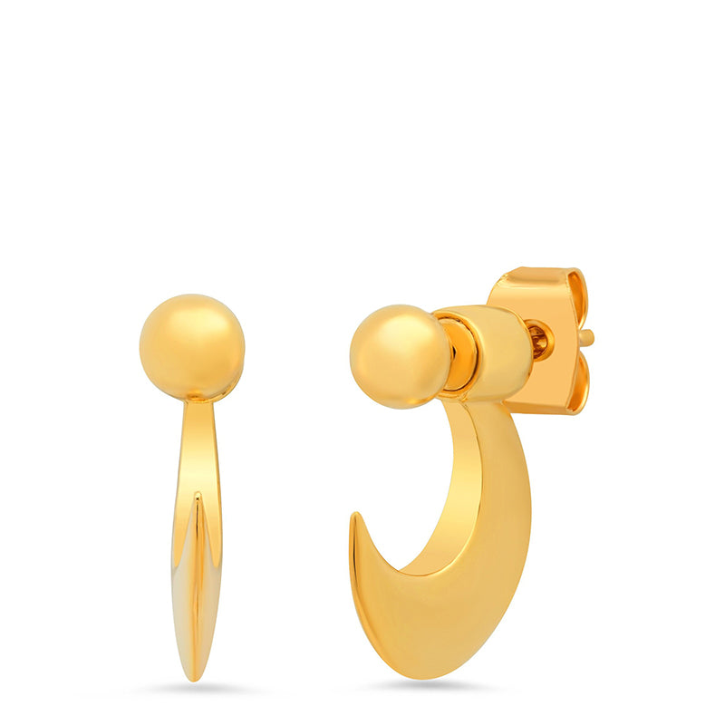 This trendy style can be worn two ways. Wear the gold ball alone as a stud or add the crescent moon huggie jacket and step up your style!