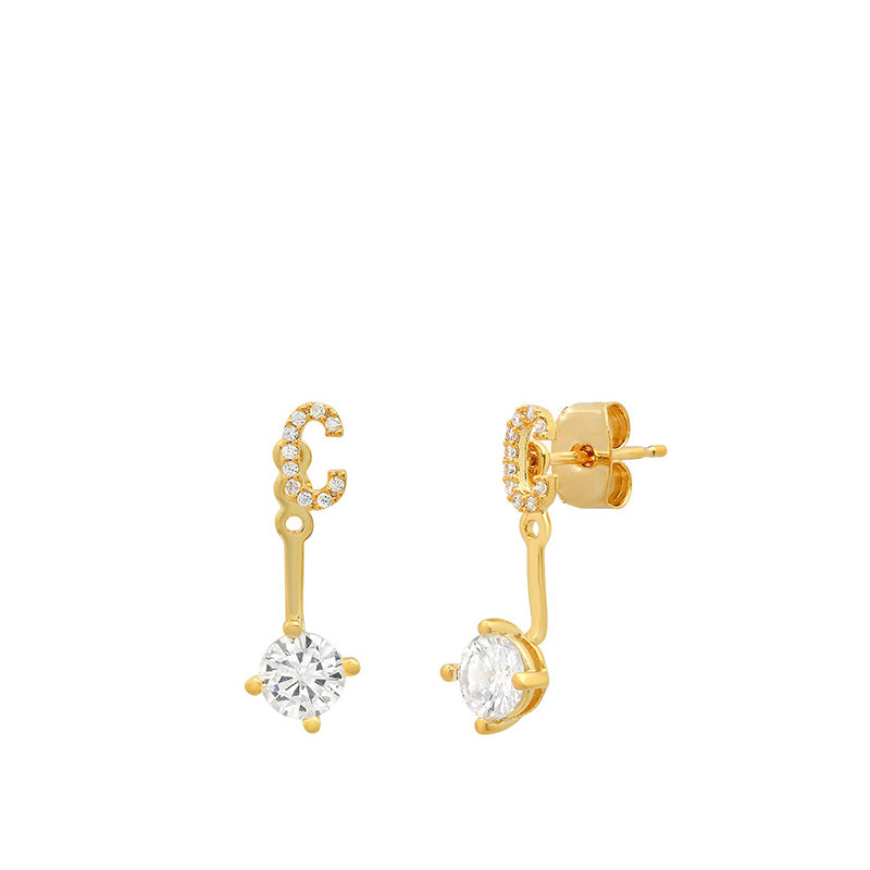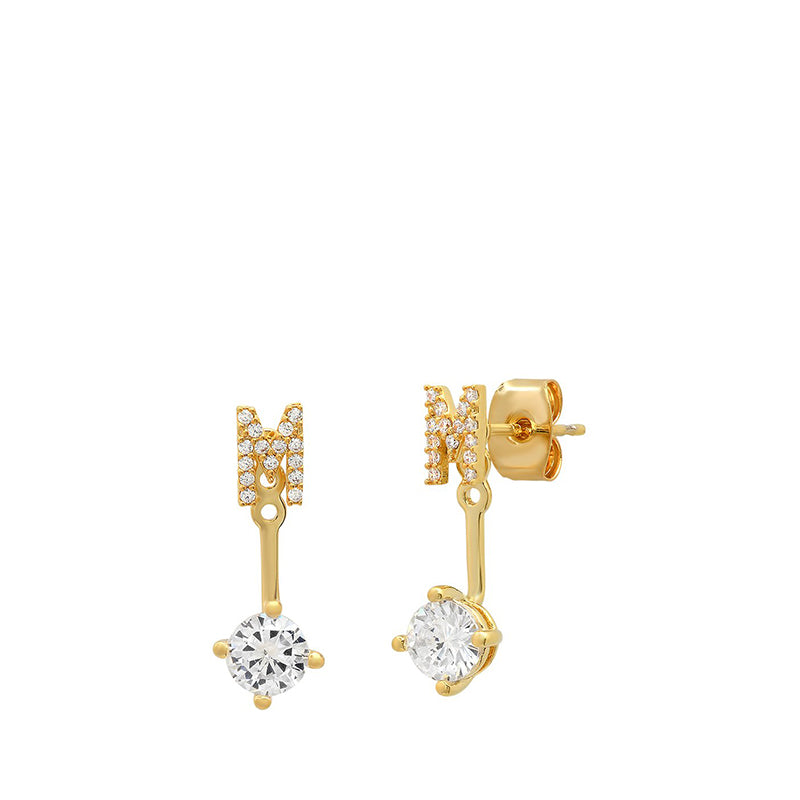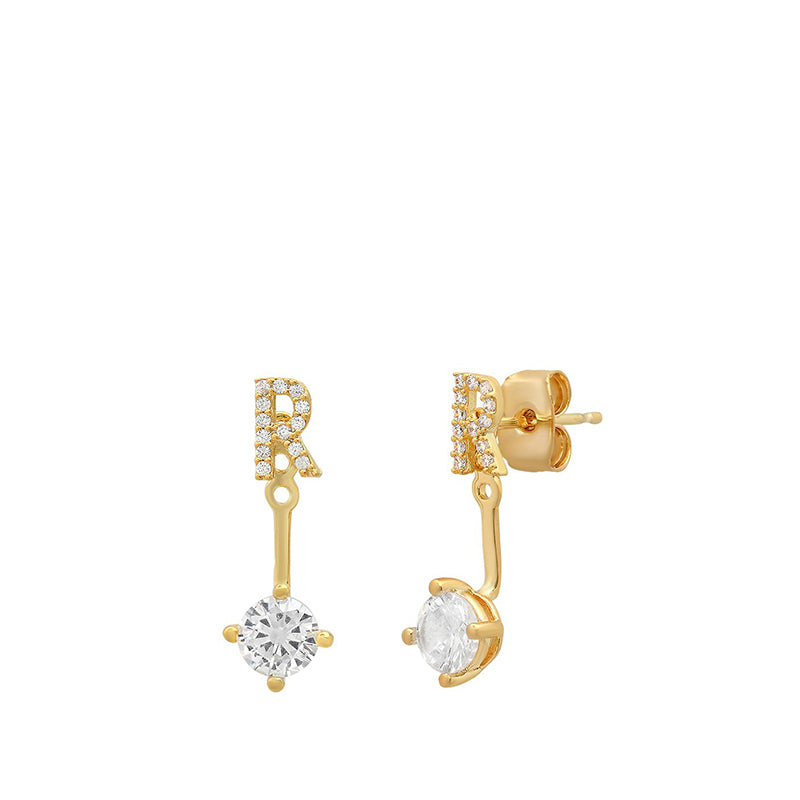 Gold, paved, and completed by a detachable CZ jacket bottom, these initials add shine and elegance wherever they go.