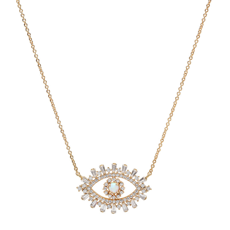 Evil Eye with Opal Center & Baguette CZ's