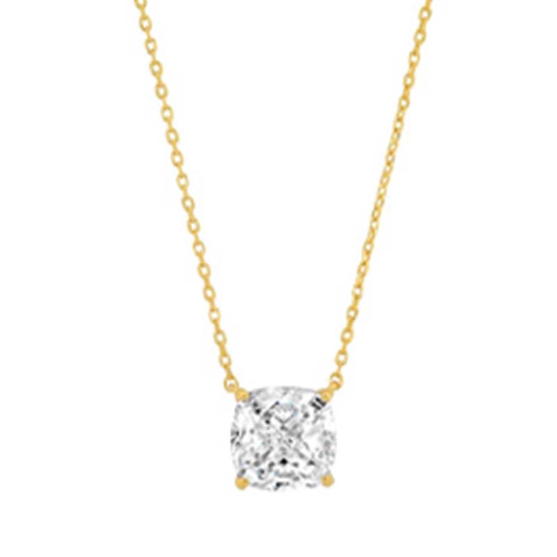 Your next style staple awaits you! Available in gold-plated sterling silver or sterling silver, this simple chain necklace with a single cushion cut CZ is a stunning piece with any outfit.
