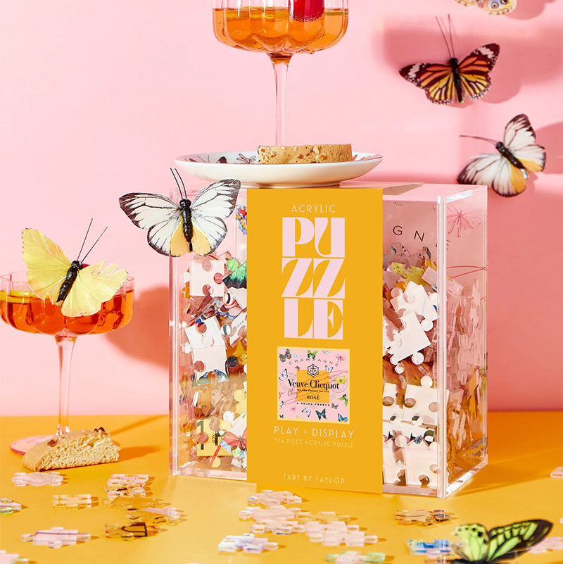 Piece together beauty and fun. This chic puzzle comes in a matching acrylic display box, making it a unique addition to any room. With a stunning butterfly and rose design, it's the perfect way to unwind and add a touch of flutter to your day.