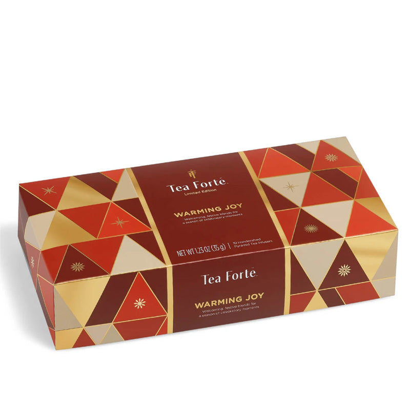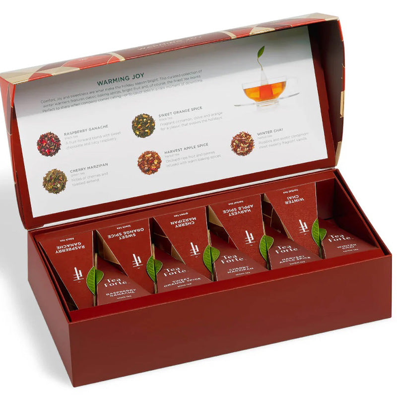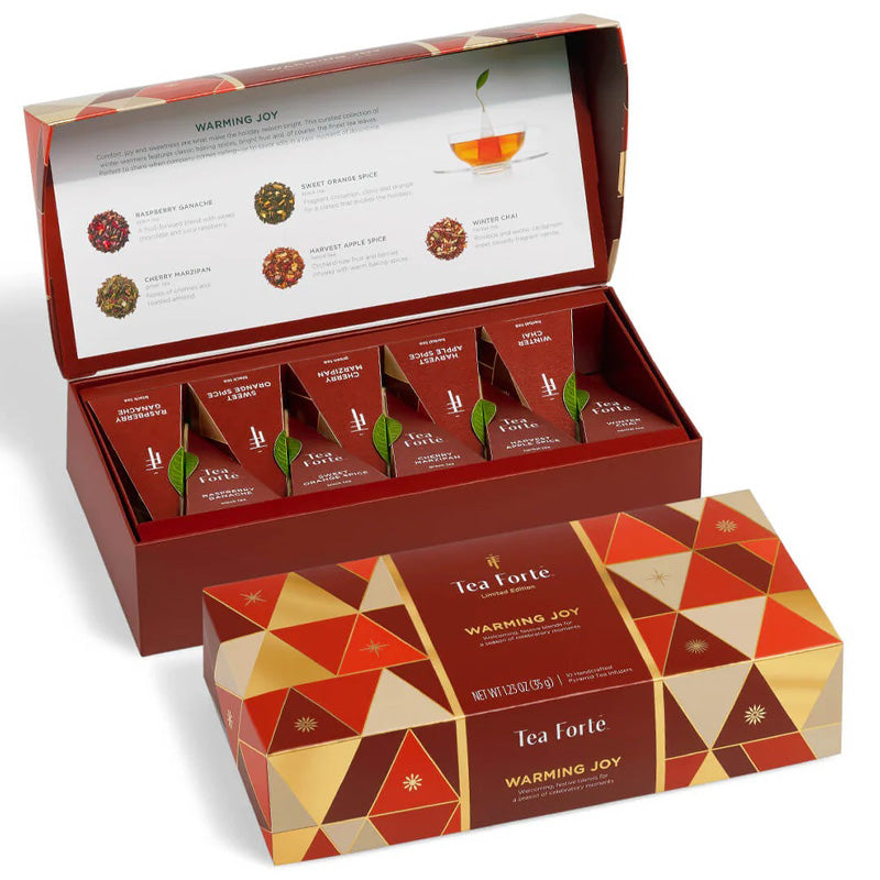 The Warming Joy Petite Presentation Box is a perfect way to introduce yourself, or someone else, to the extraordinary experience of Tea Forté. The open lid reveals a detailed tasting menu and 10 teas.