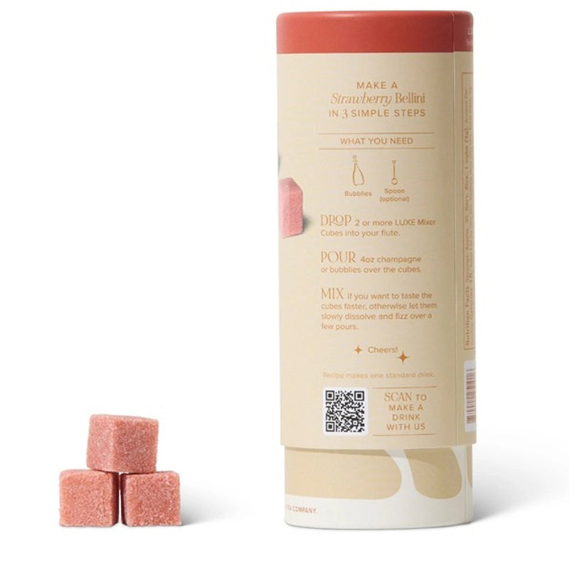 From the classic Mimosa Cube Collection. Formerly known as Strawberry Mixology Cube, this berry-drink mixer cube elevates any caliber of champagne with the fragrant appeal of luscious, juicy strawberries. A twist on a traditional mimosa, we created this mixer cube as a buildable and travel-friendly alternative to fresh juice for champagne, bubbly, or sparkling water.