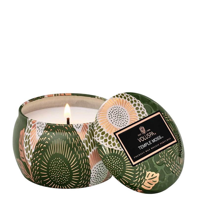 Voluspa's unique coconut wax blend is hand-poured into a 4 oz. metal vessel adorned in Japonica pattern and is topped with a matching lid that keeps the candle dust-free when not in use. The single wick allows you to enjoy fragrance throw for 25 hours. These candles are hand-poured in the United States and feature proprietary, clean-burning coconut wax blend and 100% natural wicks.